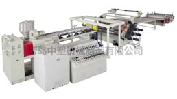 PVC 琉璃瓦生產(chǎn)線,由二臺錐形雙螺桿擠出機,一臺單螺桿擠出機,...