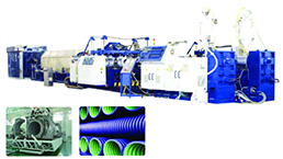 PE-PVC 單壁波紋管生產(chǎn)線,通過齒輪傳動模塊,模板串水冷卻,制...