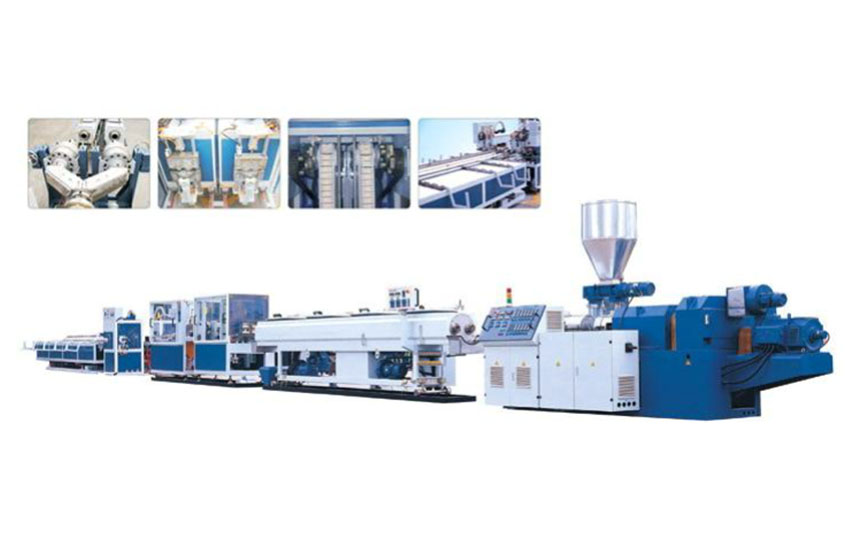PVC 雙管擠出生產線生產的產品主要應用于建筑穿線管,電工管等,一流的品質融進了多年經驗, 主機采用錐形雙螺桿擠出機,提高混煉效果,擠出壓力高。雙管擠出模具。生產效率高,成型穩(wěn)定。采用雙管真空定徑技術,噴淋冷卻,確保管材質量。獨立控制的整體結構的雙管牽引機構和同步切割裝置。設備緊湊,占地面小。配合準確及隨意設定的定翻和堆放裝置。