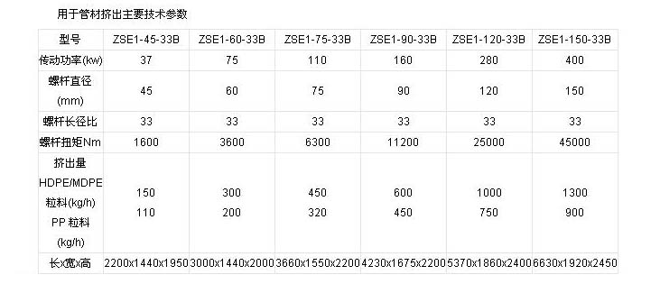 5、對不同的物料提供了廣泛的加工范圍,適用于各種聚烯烴原料,特別適用于HDPE、PP、ABS管材原料。