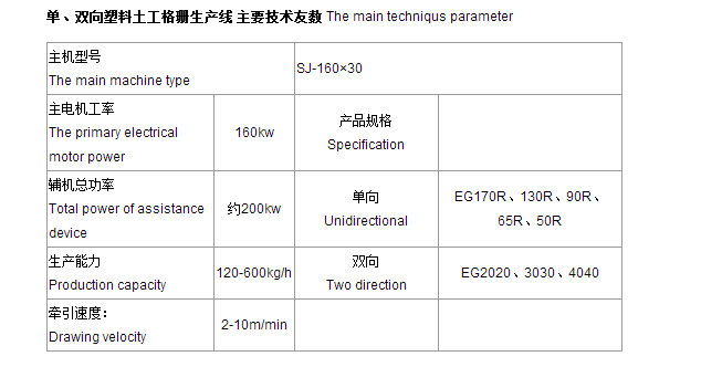 我公司生產(chǎn)的GSB-Z塑料單、雙向拉伸土工格柵機組是在吸收國外選進技術(shù)并結(jié)合本公司多年生產(chǎn)塑料板材設(shè)備經(jīng)驗基礎(chǔ)上自行研制開發(fā)的最新產(chǎn)品,它主要用于生產(chǎn)各種規(guī)格的單、雙向土工格柵。該格柵可廣泛應(yīng)用于高速公路、市政道貌路、鐵路、飛機跑道等路基增強、公路、鐵路,以及江河海河岸邊的加筋土檔墻的加筋工程;江河海壩的堤壩增強;以及果園、菜地、牲畜、工地等圍欄。
