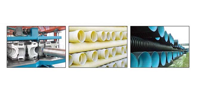 成型機(jī)及模具: 成型機(jī)及機(jī)頭精度高,模塊互換性好,模塊冷卻方式有水冷和風(fēng)冷兩種,可以實現(xiàn)在線擴(kuò)口,確保成型管材的各 項性能指標(biāo),環(huán)形雙刀切割機(jī)具有優(yōu)異的切割精度,整條生產(chǎn)線采用西門子人機(jī)界面控制系統(tǒng),具有很高的自控 功能,更換擠出機(jī)及相關(guān)零部件可生產(chǎn)PVC 加筋管。此設(shè)備已在上海、安徽、山東、江蘇、浙江、山西等地廣泛 使用。